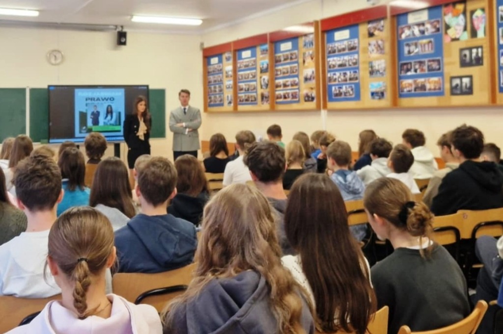 W dniu 4 listopada 2024 roku uczennice i uczniowie klasy 1a i klasy 1c uczestniczyli w zajęciach prawniczych prowadzonych przez dwoje absolwentów „Wróblewskiego”: adwokata Pana Krystiana Jamroza i Panią Paulinę Kurpan, aplikanta adwokackiego. Tegoroczna edycja poświęcona jest tematyce: „Małoletni wobec prawa – czy prawo dotyczy tylko dorosłych?”
