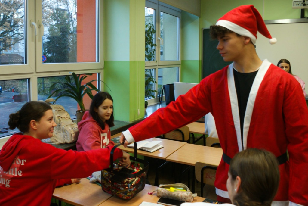 W rolę Świętego Mikołaja wcielił się przewodniczący SU Maksymilian Pabis (3e), odwiedzając klasy w asyście świątecznych pomocników: Darii Okhrimenko (3e) oraz Martyny Dziury (3c), która, jako pasjonatka fotografii, wykonała wiele zdjęć dokumentujących wydarzenie. Obejrzeć je można na koncie SU na Instagramie. Koordynatorem akcji była Pani mgr Agnieszka Homoncik, opiekun Samorządu Uczniowskiego IX LO.