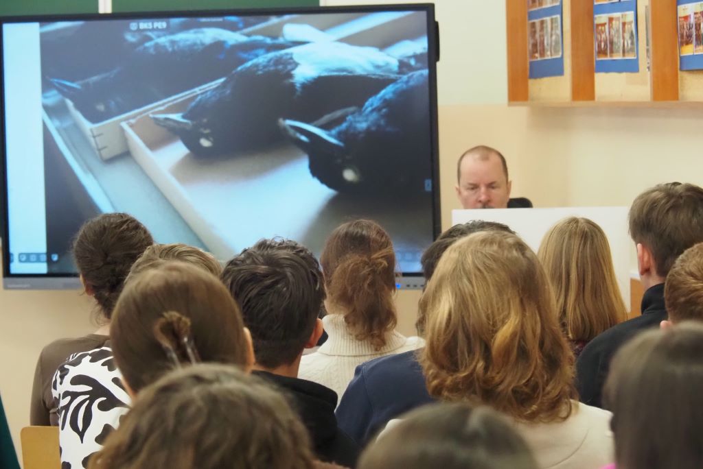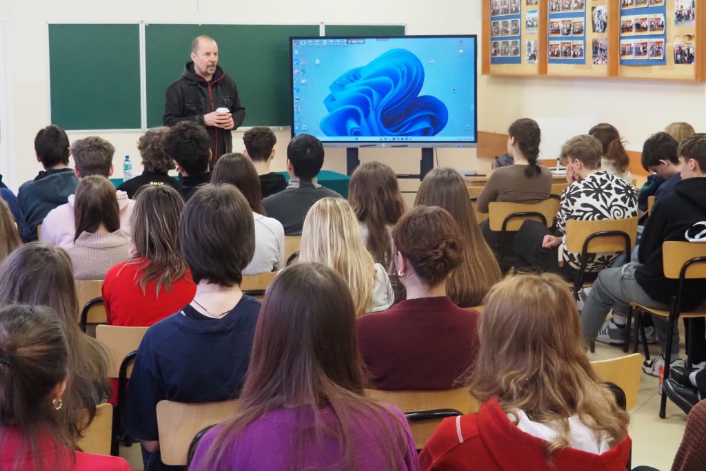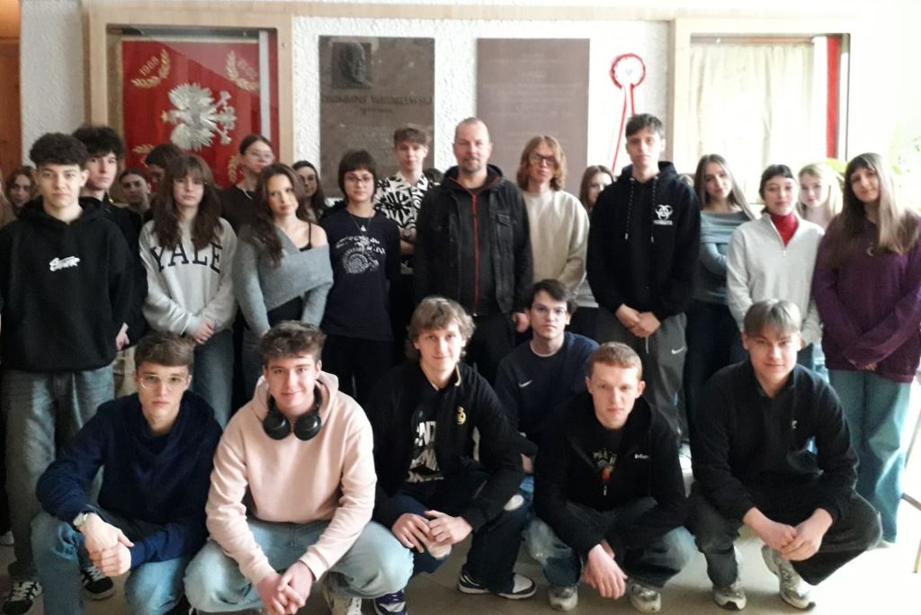 Ważnym kontekstem spotkania z Panem Michałem Olszewskim były też: niedawno obchodzona 80-ta rocznica wyzwolenia obozu Auschwitz-Birkenau (27 stycznia) oraz zbliżająca się trzecia rocznica agresji Rosji na Ukrainę. Michał Olszewski podzielił się z młodzieżą informacjami, fotografiami i refleksjami ze swoich licznych podróży do Ukrainy.