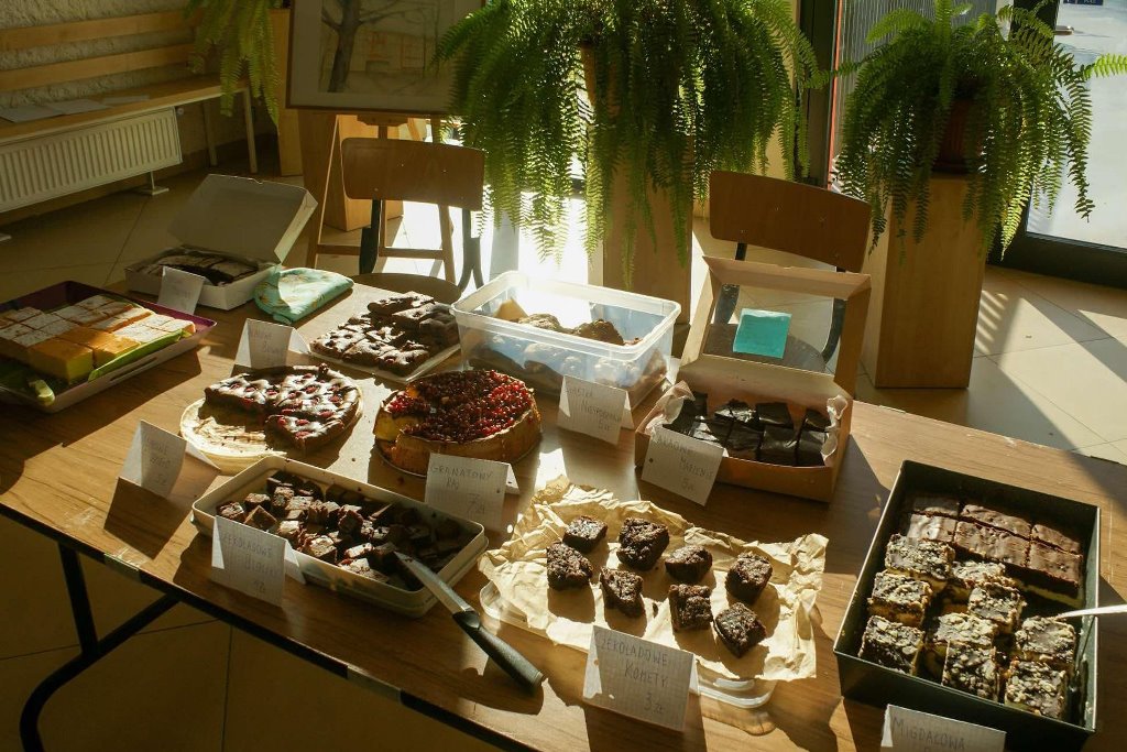 Przedstawiciele każdej klasy przynieśli samodzielnie upieczone ciasta lub ciasteczka, które następnie uczniowie z Samorządu Uczniowskiego podzielili na kawałki, przygotowali stanowisko kiermaszu i o godzinie 10:15 oficjalnie rozpoczęli sprzedaż ciast. Liczba uczniów, którzy zaangażowali się w akcję była bardzo duża i na każdej z przerw, przy stanowisku, ustawiały się długie kolejki. Popołudniu w kiermaszu wzięli udział rodzice uczniów.