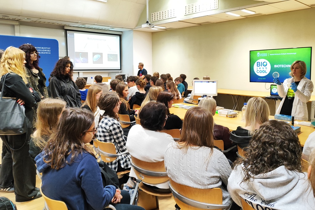 W dniu 16 maja 2025 roku, uczniowie klasy 3c o profilu biologiczno-chemicznym uczestniczyli w wydarzeniu „Bio jest cool”, organizowanym cyklicznie przez Wydział Biochemii, Biofizyki i Biotechnologii Uniwersytetu Jagiellońskiego. To wyjątkowa inicjatywa popularyzująca dynamicznie rozwijające się i często trudne do jednoznacznego sklasyfikowania dziedziny nauk przyrodniczych – takie jak biochemia, biotechnologia, biofizyka i bioinformatyka.
