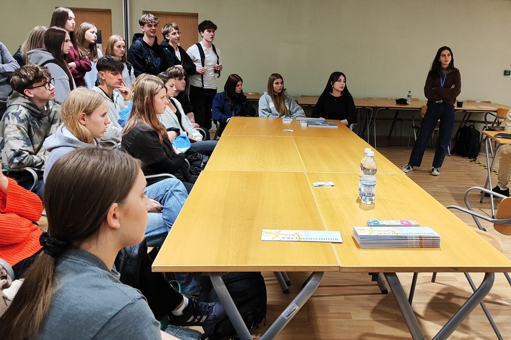 Udział klasy 3c rozpoczął się o godzinie 12:00 wykładem dr Jakuba Kwiecińskiego pt. „Biotechnologia – jak badanie małych bakterii może zmienić wielki świat”. Prelegent opowiedział o przełomowych badaniach nad gronkowcem złocistym, powszechnie występującą bakterią, która – jak się okazuje – przyczyniła się do rozwoju nowoczesnych technologii, takich jak sekwencjonowanie DNA, terapie przeciwciałami, a nawet broń biologiczna. Uczniowie mogli przekonać się, że biotechnologia to nie tylko teoria, lecz dziedzina mająca realny wpływ na zdrowie, bezpieczeństwo i przyszłość ludzkości.