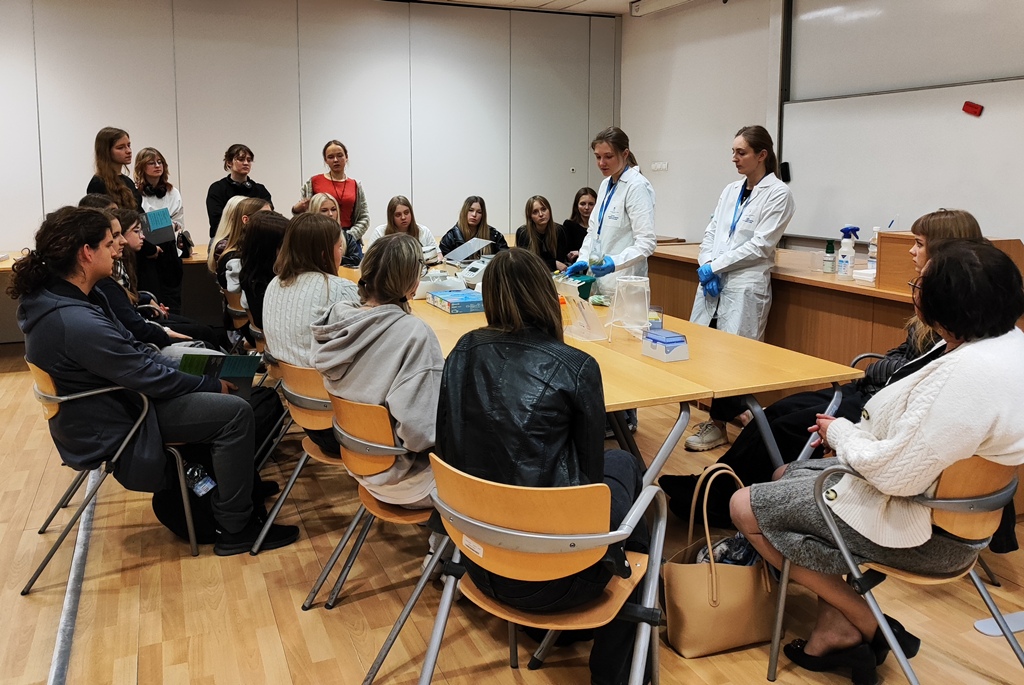Kolejnym punktem programu były interaktywne pokazy naukowe zatytułowane „Białko widziane oczami biotechnologa, bioinformatyka, biofizyka i biochemika”. Uczniowie mieli okazję wziąć udział w warsztatach, podczas których mogli z różnych perspektyw poznać strukturę i funkcje białek, dowiedzieć się więcej o procesach takich jak klonowanie, denaturacja, analiza sekwencji genetycznych czy oddziaływania z promieniowaniem elektromagnetycznym.