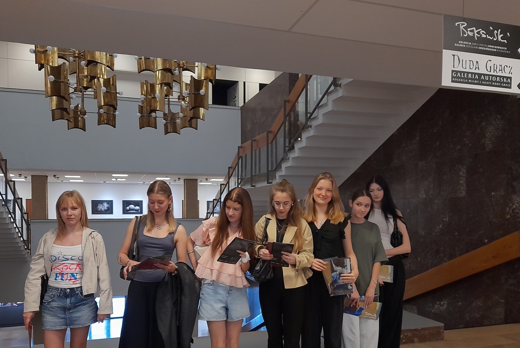 Następnie klasa zwiedziła dwie stałe wystawy malarstwa słynnych twórców Jerzego Dudy-Gracza oraz Zdzisława Beksińskiego. Ciekawa okazała się także czasowa ekspozycja plakatów ze zbiorów Pracowni Projektowania Plakatu Wydziału Grafiki ASP w Krakowie.