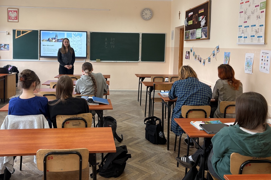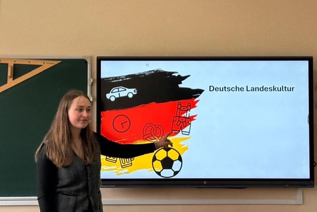 W dniu 9 kwietnia 2026 roku lekcję języka niemieckiego w klasie 3d (pol-biol-niem) przeprowadziła Frieda Schwab – studentka z Niemiec. Spotkanie to zostało zorganizowane w ramach projektu Goethe Institut „Deutsch Plus”, w którym nasza szkoła bierze udział od 2019 roku.